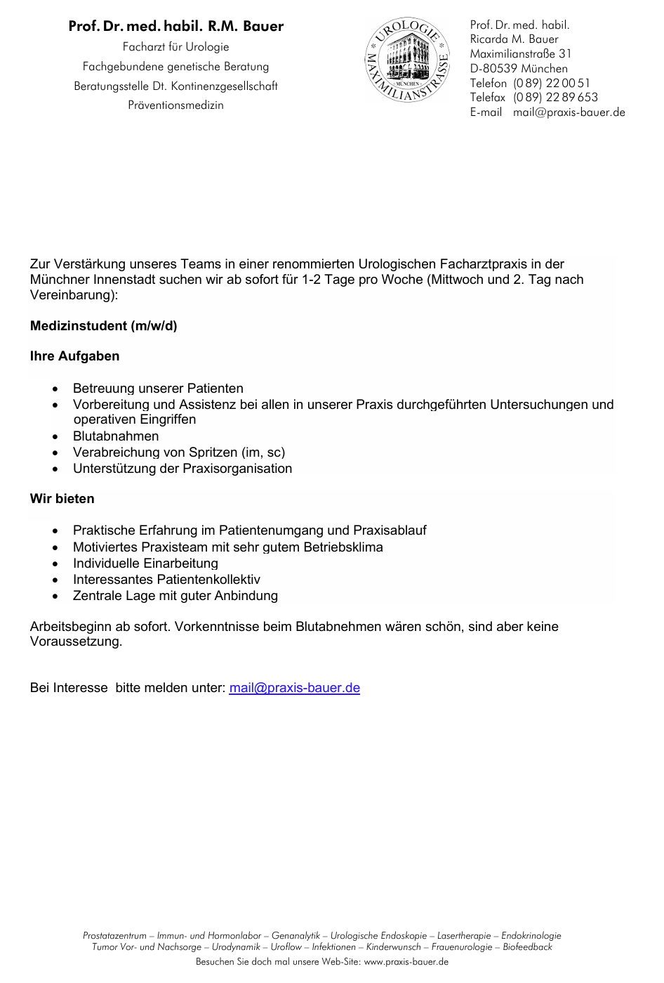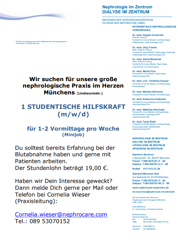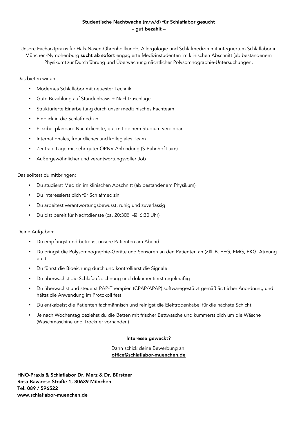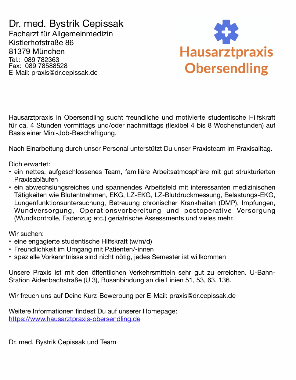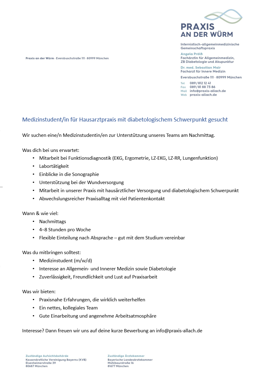 – Notfalldienste bei Interesse: Eine Beteiligung am Notfalldienst in Zürich ist möglich.