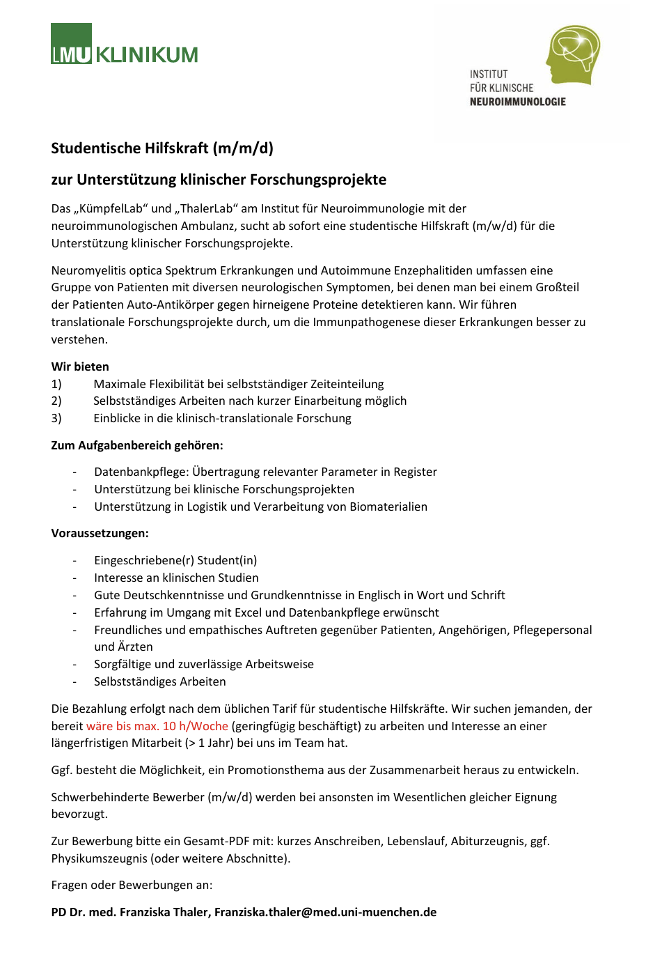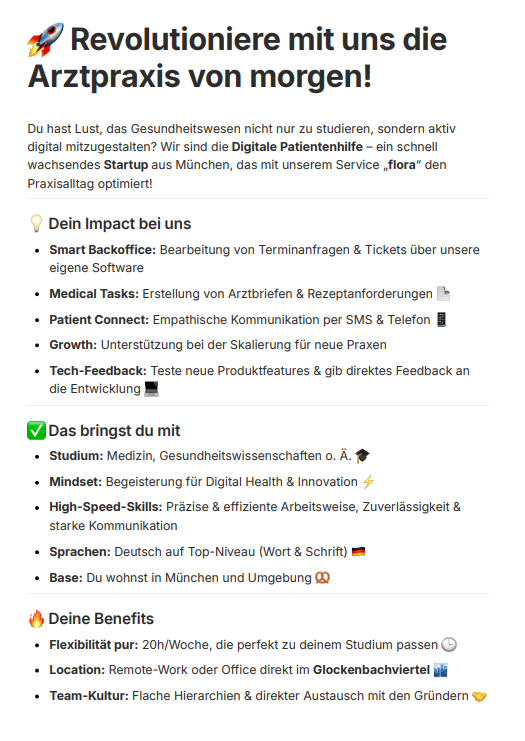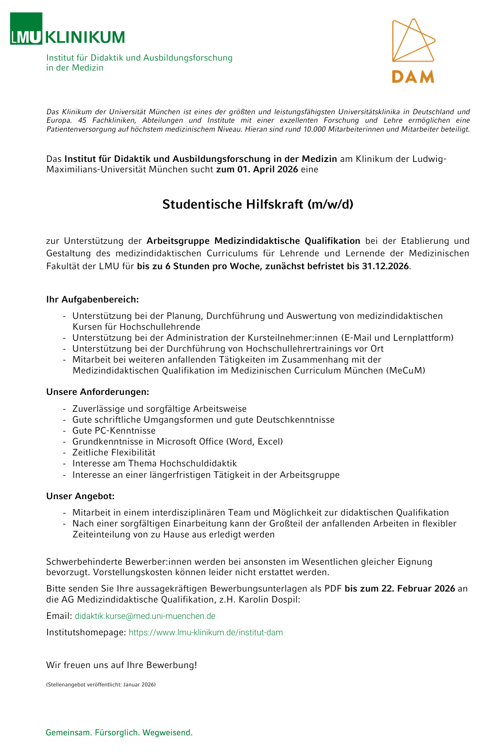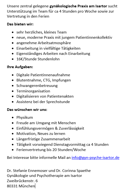 Wir suchen Verstärkung ab Ende 2026 oder nach Vereinbarung.