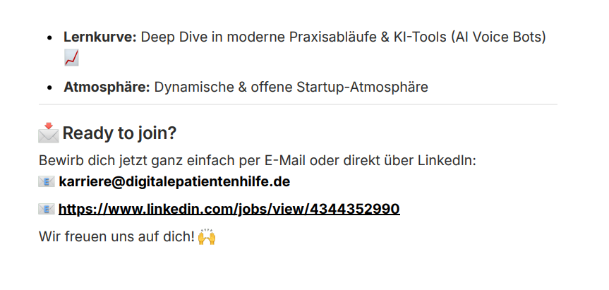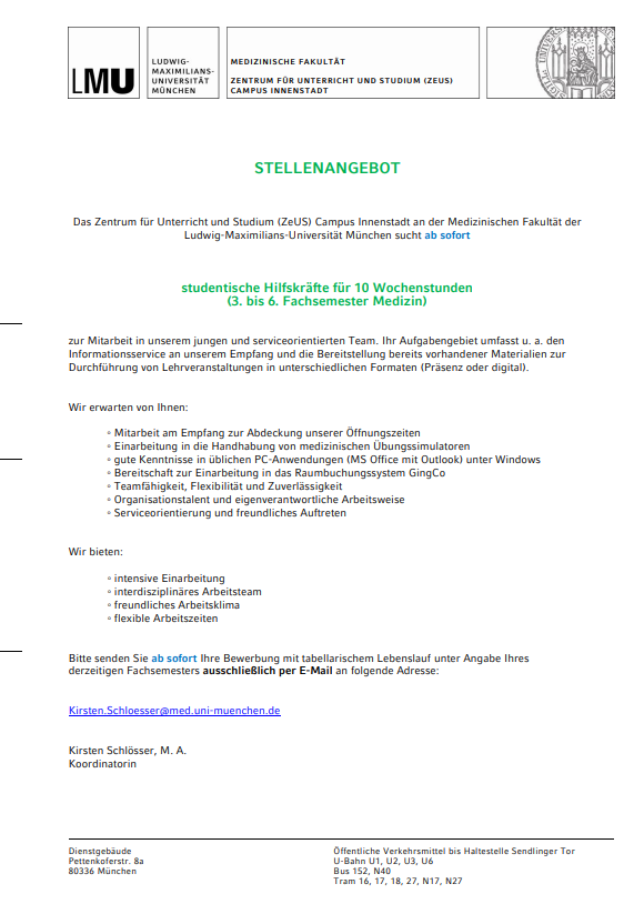 Klingt das nach Ihrer Stelle? Dann senden Sie Anschreiben, Lebenslauf und relevante Zeugnisse gern an