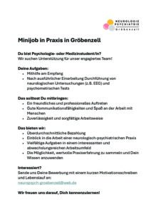 ZurückVorheriger Beitrag:zentral gelegene gynäkologische Praxis sucht Werkstudent*innen oder 520 Euro-JobNächstesNächster Beitrag:Studentische Hilfskraft für neurologisch-psychiatrische Praxis in Gröbenzell